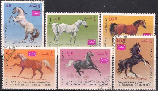 Йемен 1967 год. Лошади. 6 марок (гашеные)