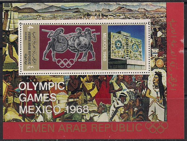 Йемен 1968 год. Летние Олимпийские Игры в Мехико. Древняя мексиканская культура. 1 блок