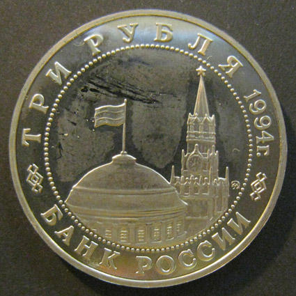 Юбилейная монета 3 рубля. 50 лет освобождения Белграда. 1994 г. Proof