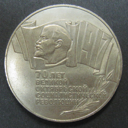 Юбилейная монета. 70 лет Великой Октябрьской Социалистической Революции. 5 рублей.
