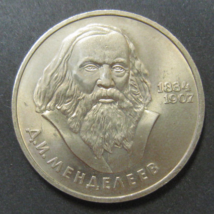 Юбилейная монета. Д.И. Менделеев 1834-1907. 1 рубль. 1984 г.
