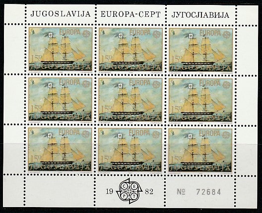 Югославия 1982 год. Парусное судно "Великолепный", малый лист. (5)