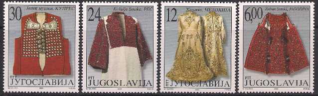 Югославия 2000 год. Национальные костюмы Сербии 19-го века. 4 марки (3м)