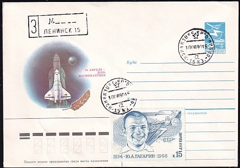 Заказное ХМК 89-402 с гашением Ленинск. Космодром Байконур. День космонавтики. Выпуск 17.11.1989 год