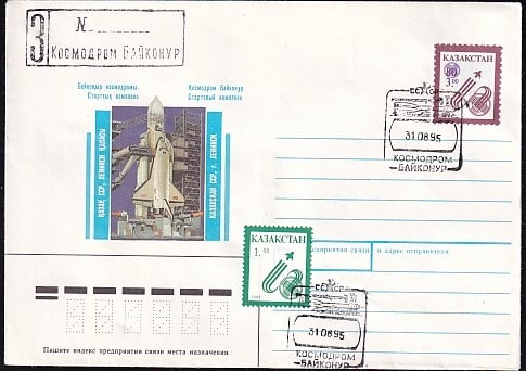 Заказное ХМК со СГ "Космодром Байконур" (марка Казахстан), 31.08.1995 год