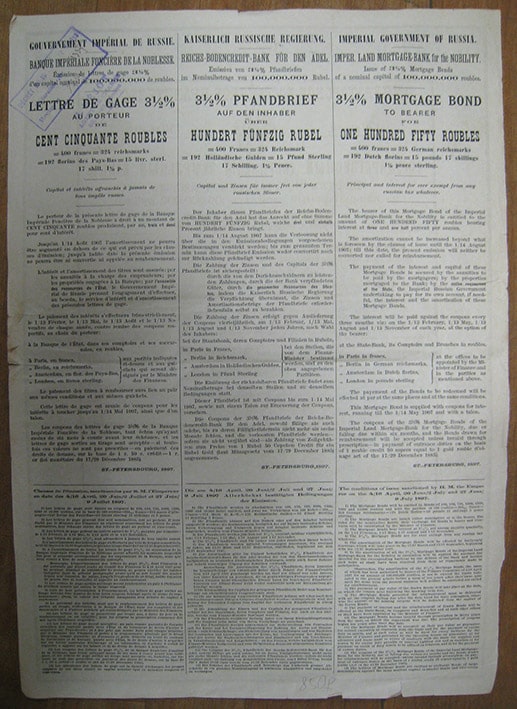 Закладной лист № 173475 на 150 рублей. Государственный Дворянский Земельный банк