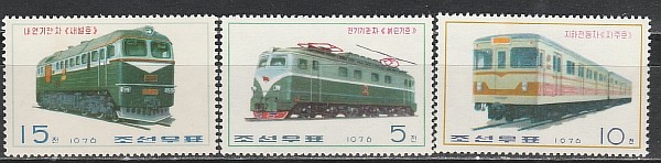Железнодорожный Транспорт, КНДР 1976 год, 3 марки (3,2)