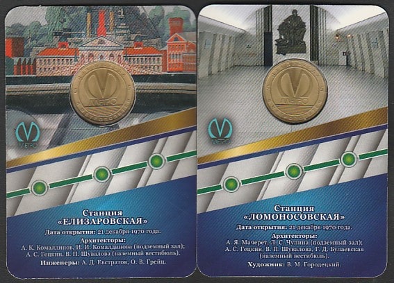 Жетон метро СПб. Станции "Ломоносовская" и "Елизаровская", 2 жетона.