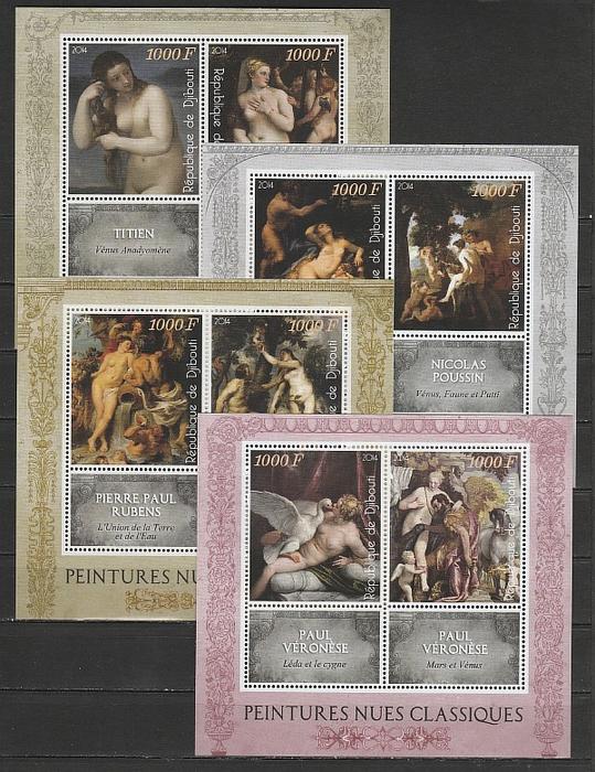 Живопись Известных Художников, Джибути 2014, 7 блоков