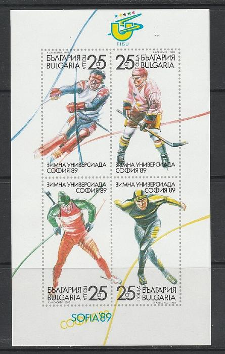 Зимние Виды Спорта, Болгария 1989 г, блок ЗУБЦОВЫЙ