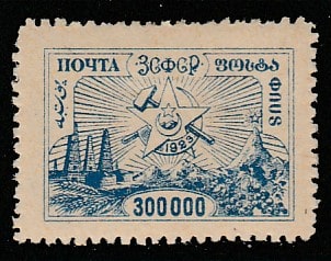 ЗСФСР 1923 год. Герб, символика, ландшафт, ном. 300000 р., 1 марка (наклейка)