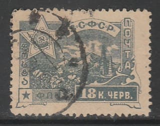 ЗСФСР (Гражданская война) 1923 год. Герб, символика, ландшафт, ном. 18 к., 1 марка (гашёная)