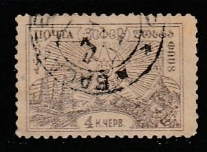 ЗСФСР (Гражданская война) 1923 год. Герб, символика, ландшафт, ном. 4 к., 1 марка (гашёная)