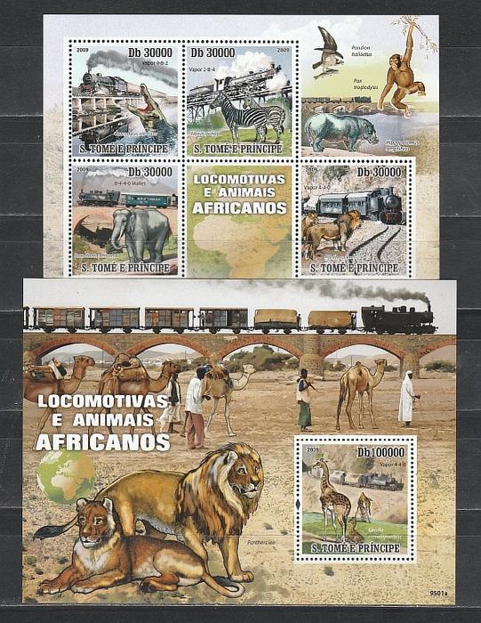 Звери, Локомотивы, Сан-Томе и Принсипи 2009, малый лист + блок